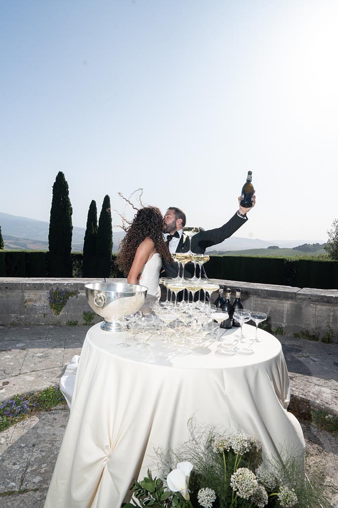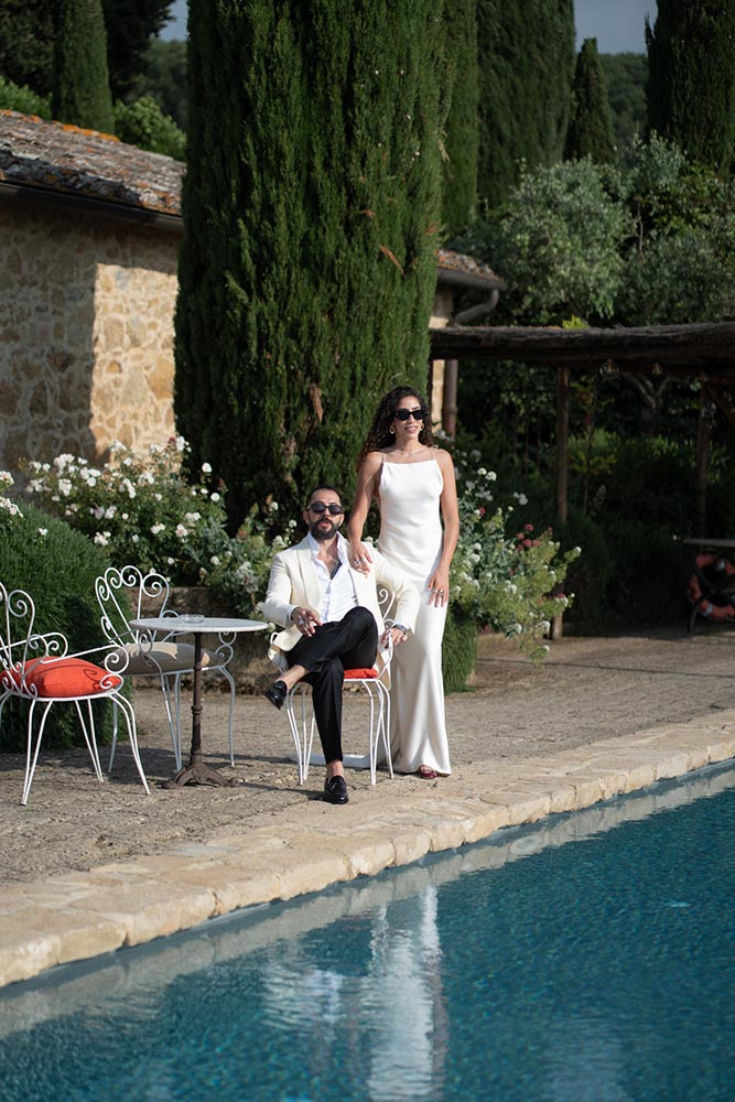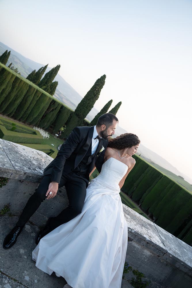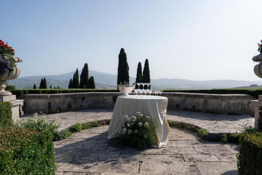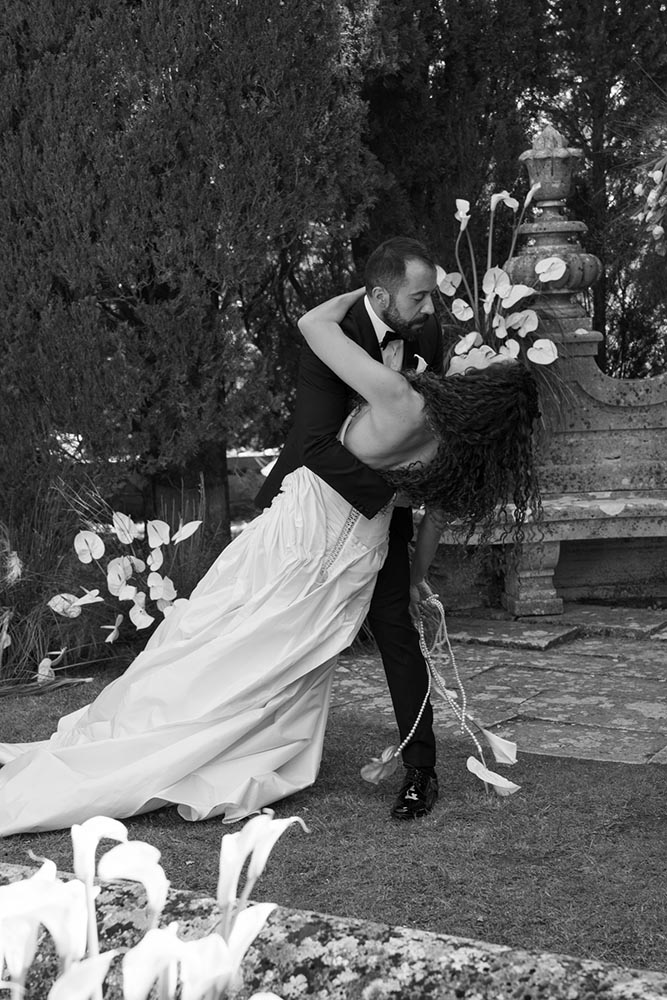 La Foce, with its world-renowned Italian gardens and sweeping Tuscan hills, set the stage for a truly iconic celebration — a wedding that blended timeless elegance with bold, artistic vision.