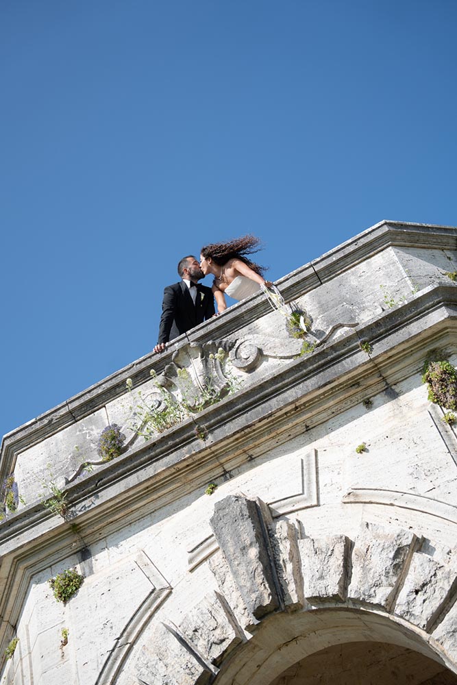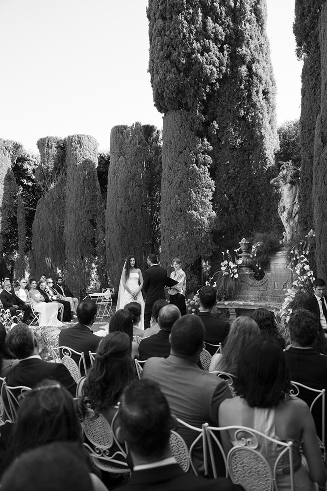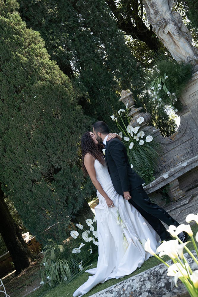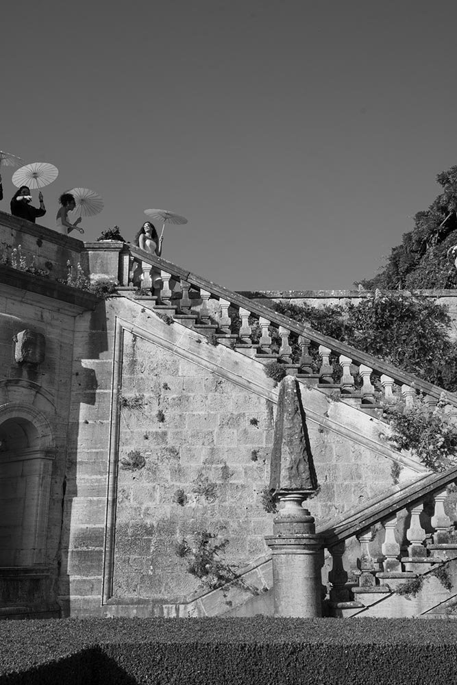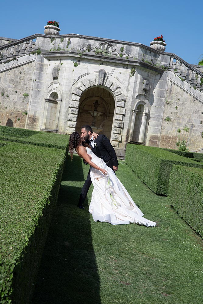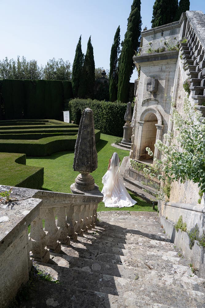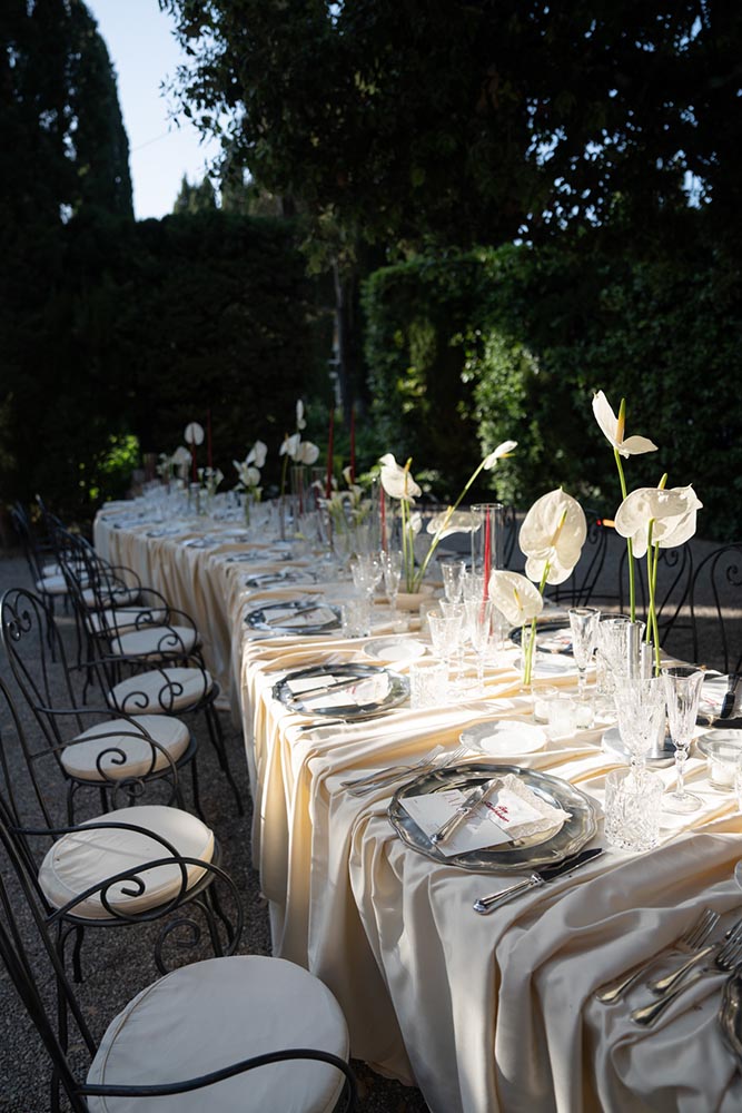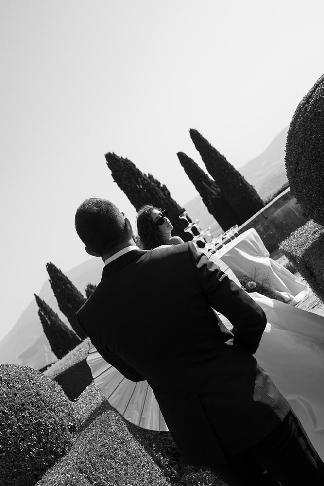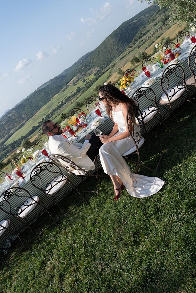 The ceremony took place at the peak of La Foce’s iconic Italian garden – a dramatic and unforgettable location. The floral design and decor were minimalist yet artistic, letting the natural grandeur speak for itself.