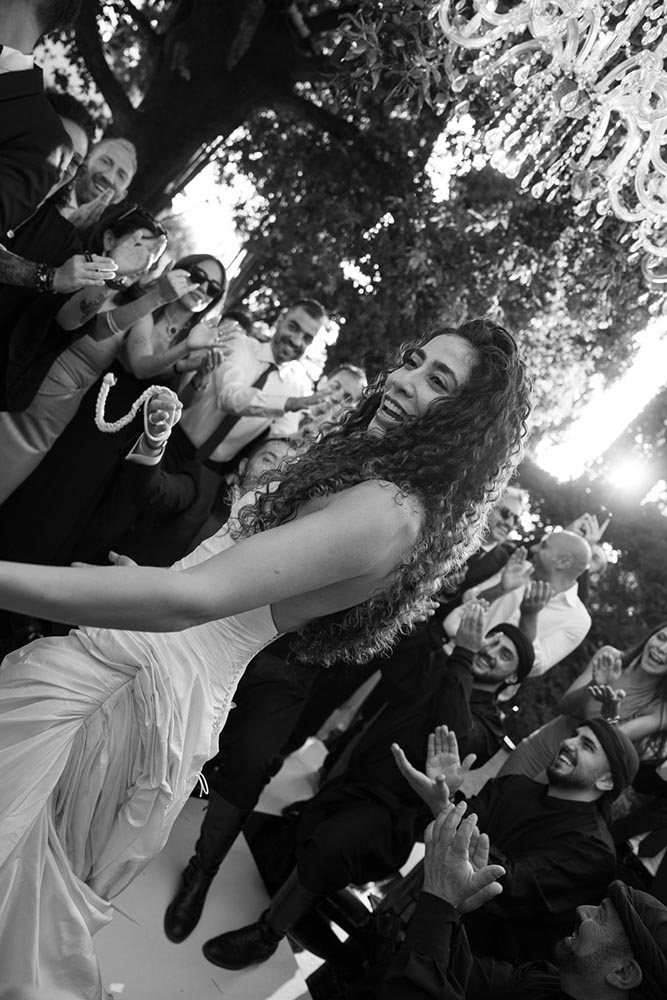The dinner felt like a curated experience of edible art – the wedding planners from The Wedding Boutique Italy orchestrated a setting where beauty met meaning at every turn. A Dabke band kicked off the meal, leading into an evening full of Arab dancing, heartfelt speeches, and unfiltered joy.