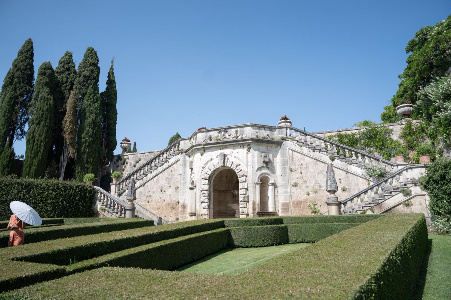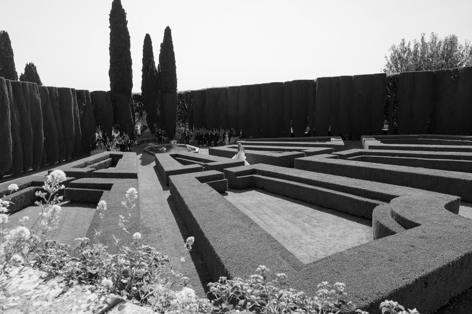 The ceremony took place at the peak of La Foce’s iconic Italian garden – a dramatic and unforgettable location. The floral design and decor were minimalist yet artistic, letting the natural grandeur speak for itself.