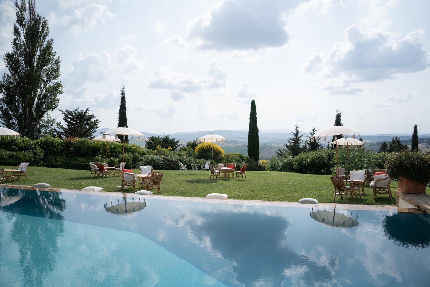 La Foce, with its world-renowned Italian gardens and sweeping Tuscan hills, set the stage for a truly iconic celebration — a wedding that blended timeless elegance with bold, artistic vision.