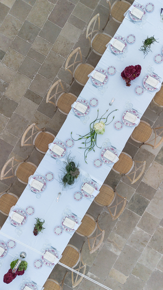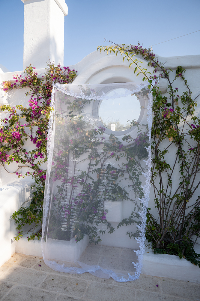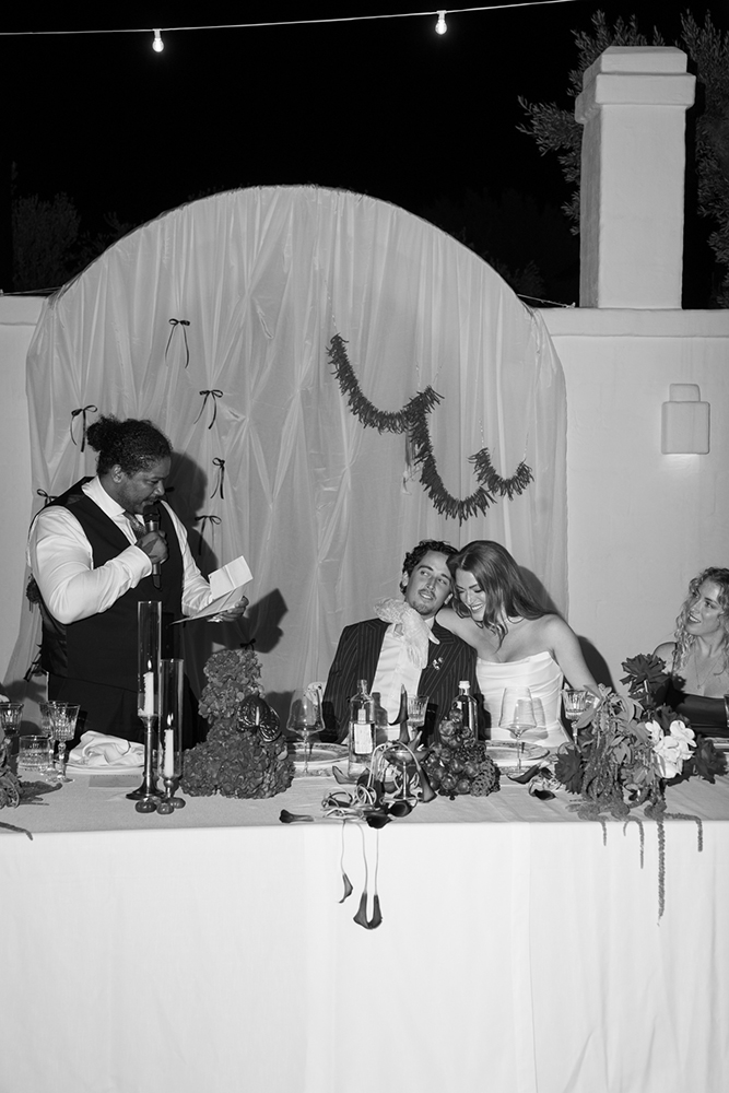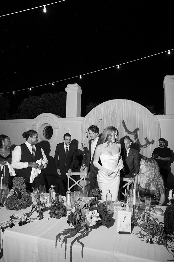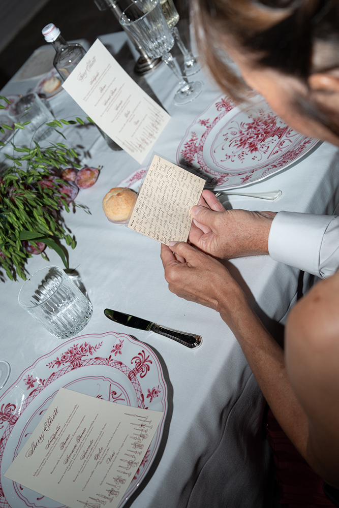 Personal details elevated the experience further: illustrated stationery and signage by Flourish Co., blending Puglian symbols with martini glasses and Hollywood glamour, and vintage Italian postcards placed at each guest’s seat, handwritten with personal messages and revealed during the couple’s thank-you speech.