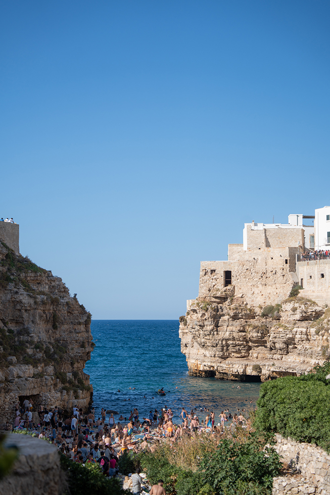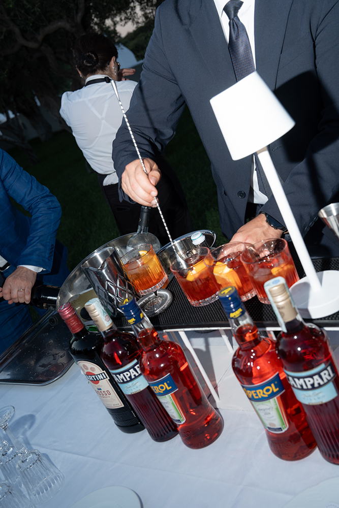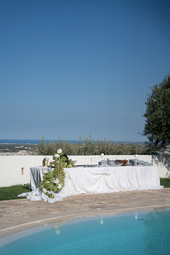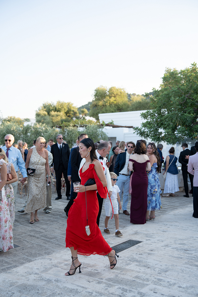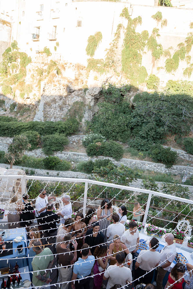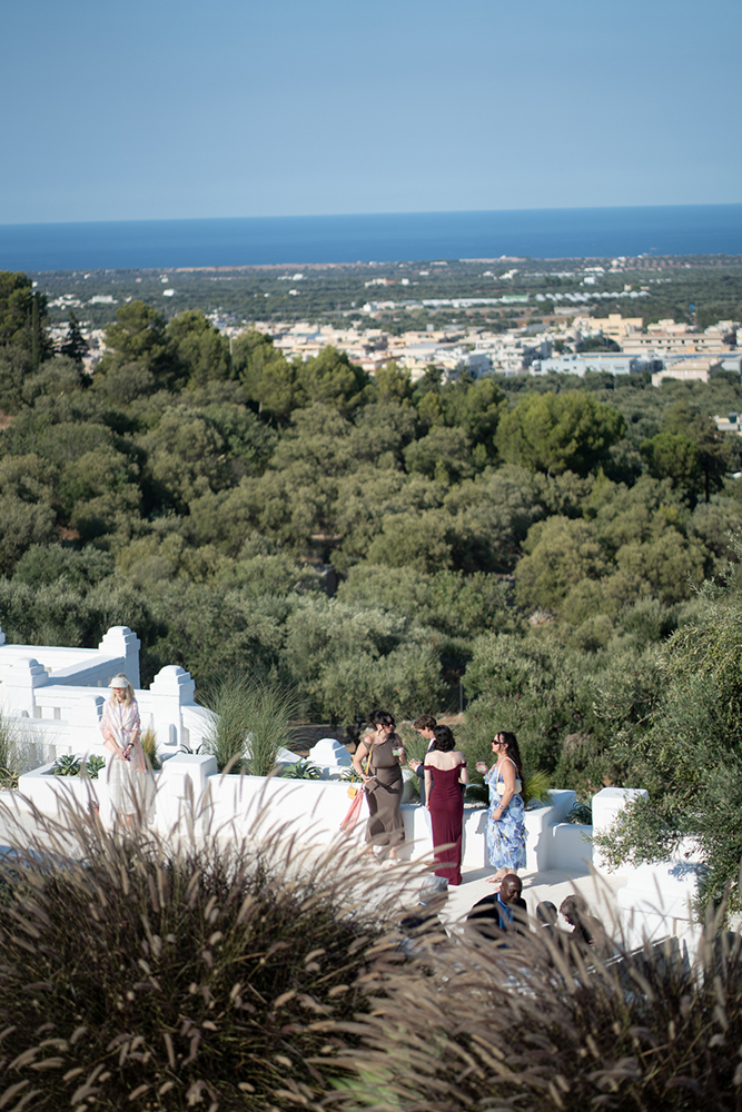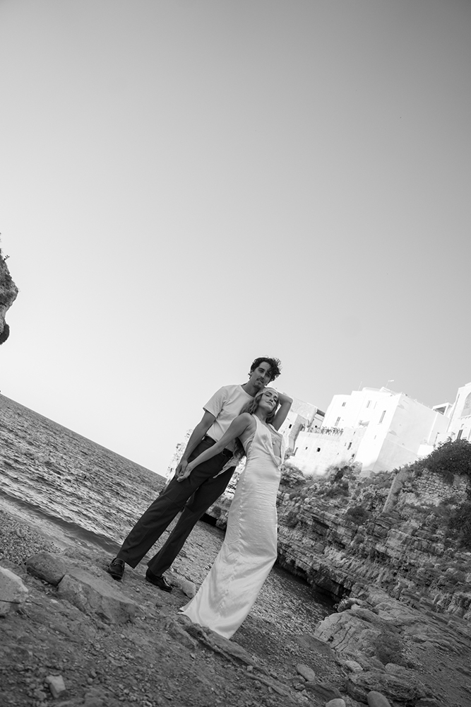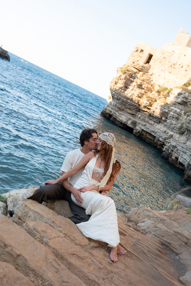 The wedding weekend began with a relaxed yet stylish welcome dinner in Polignano a Mare, setting the tone for a celebration that felt more like a shared journey than a single event. Guests gathered by the sea, easing into Apulian rhythms, warm summer nights, and the unmistakable energy of Southern Italy.