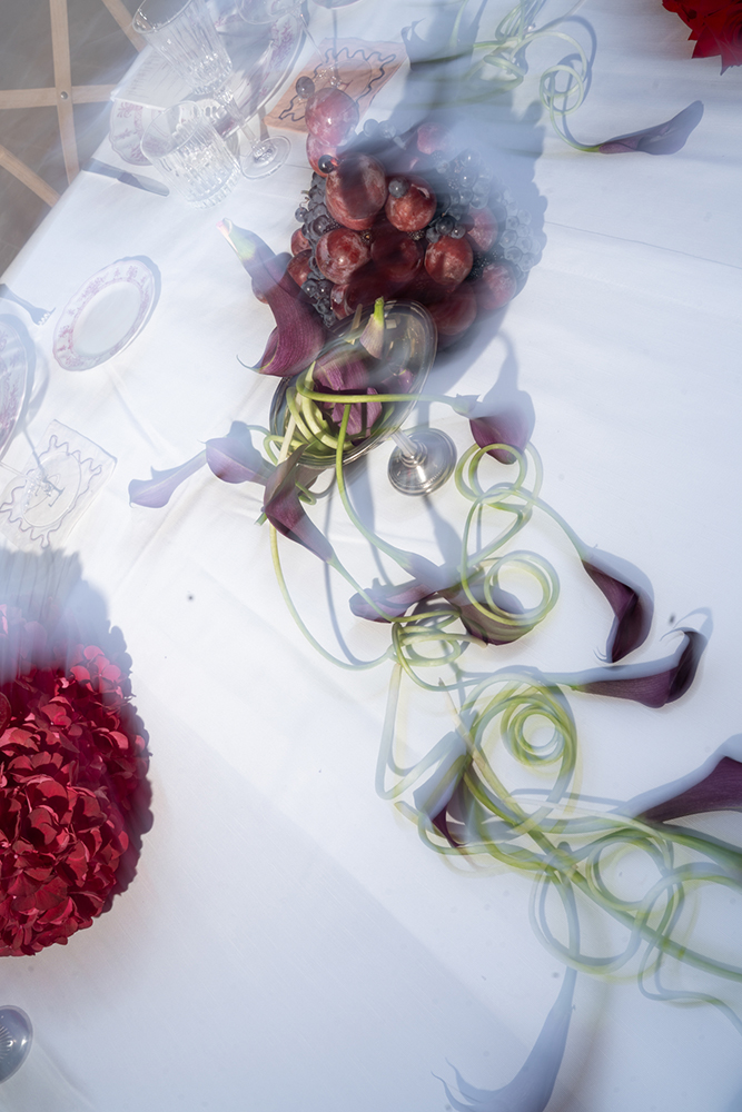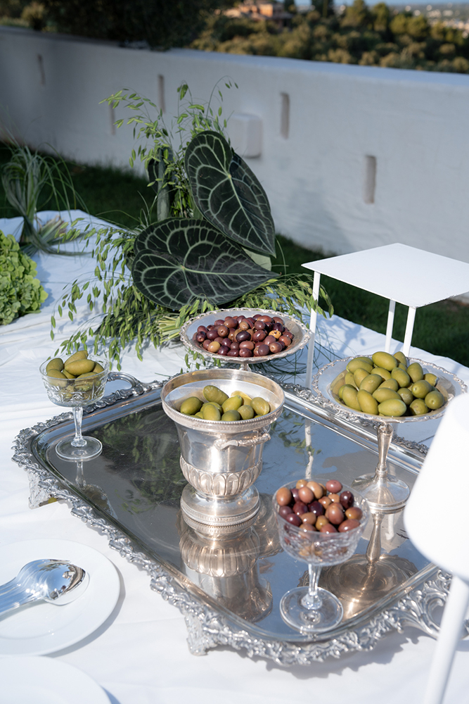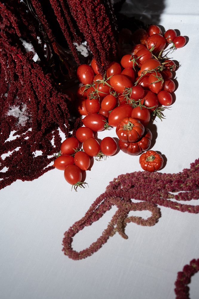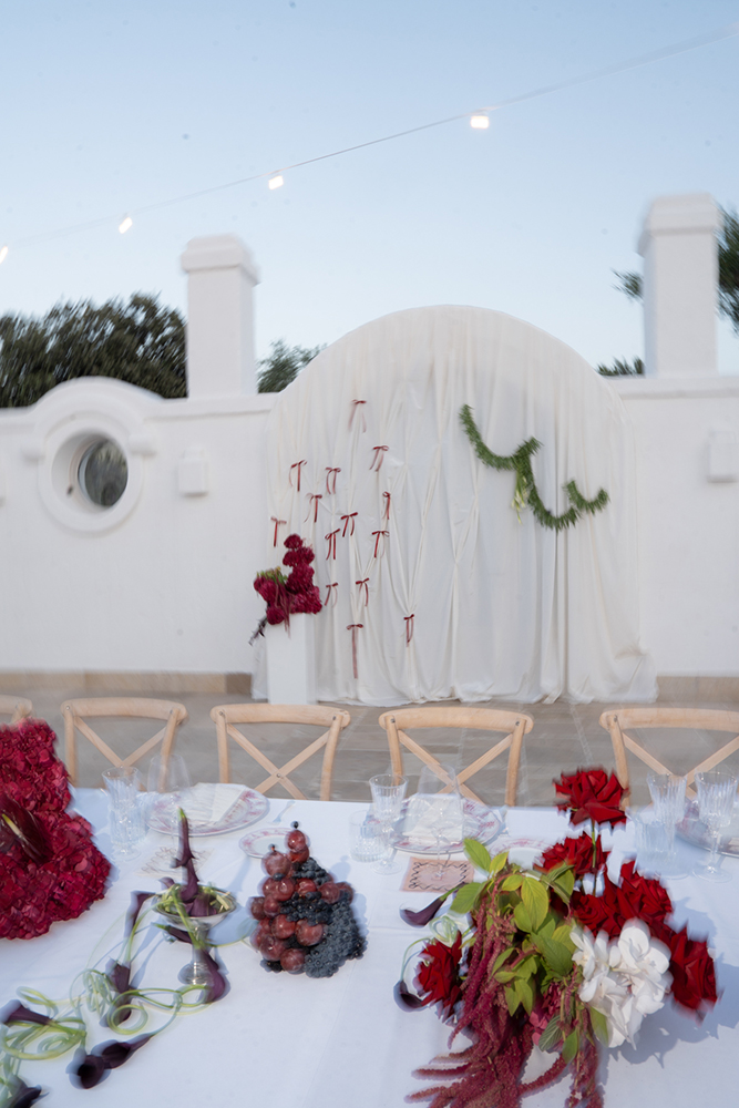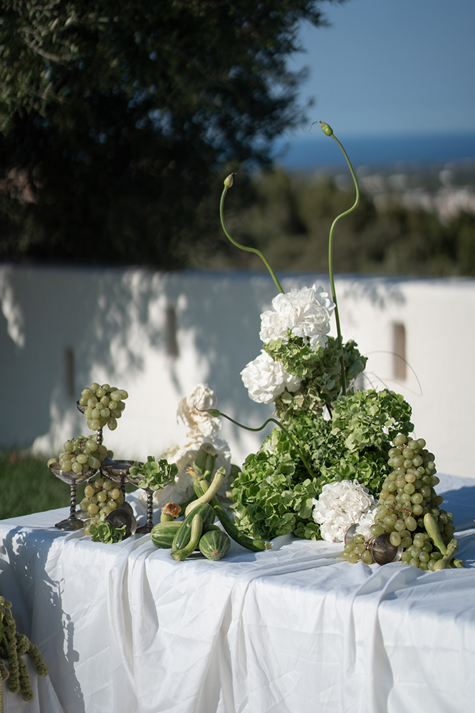 Apulian produce such as olives, grapes, and green beans, creating arrangements that felt organic, grounded, and unmistakably local.