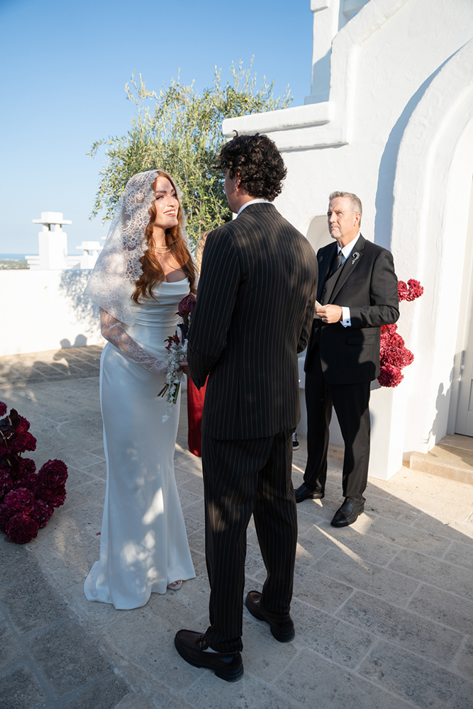 After 15 years together, childhood sweethearts Jesse and Spencer finally tied the knot in a place that felt woven into their identity. With Jesse’s Italian-American roots and a birthday trip to Puglia sparking the idea, an Italian destination wedding quickly became inevitable. The entire celebration was planned from the U.S., sight unseen, with complete trust in their planner — a decision that resulted in a wedding experience both intimate and visually striking.