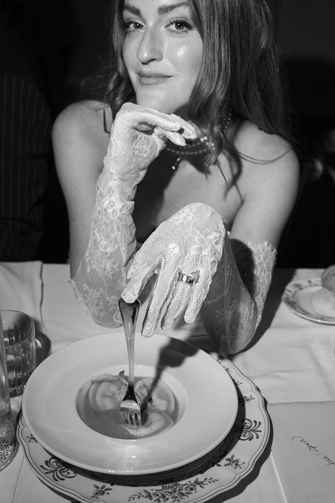 All looks followed a cohesive aesthetic: ivory tones, vintage silhouettes, Old Hollywood references, and Italian cinematic romance — echoing influences from Fellini films, jazz-era glamour, and timeless Italian elegance.