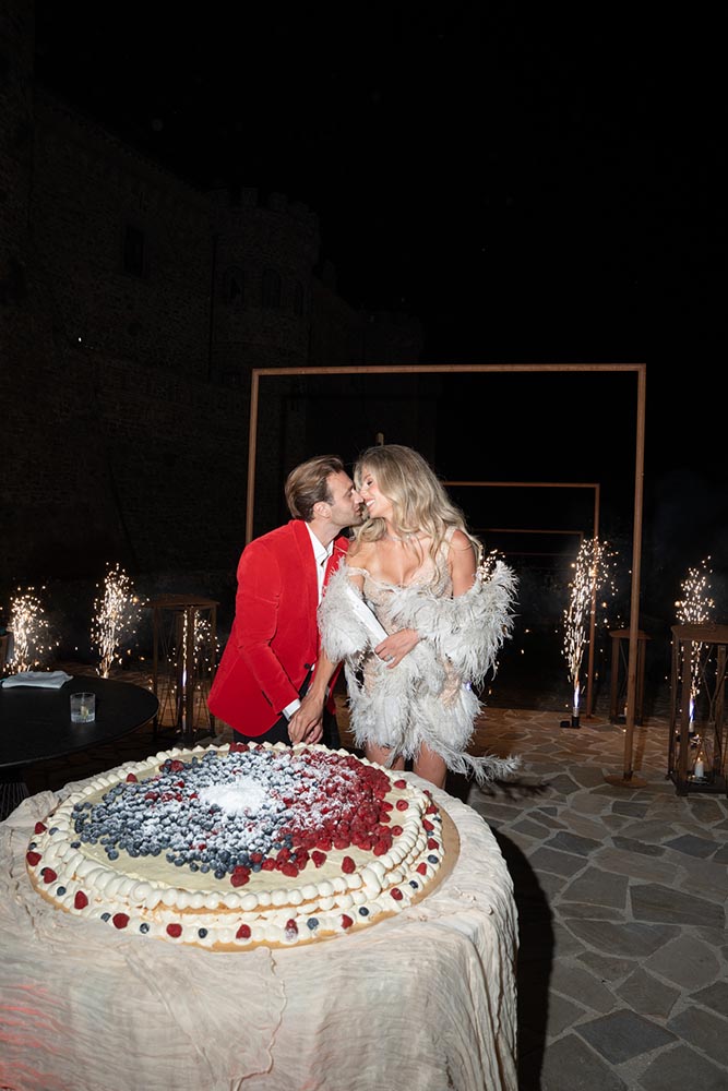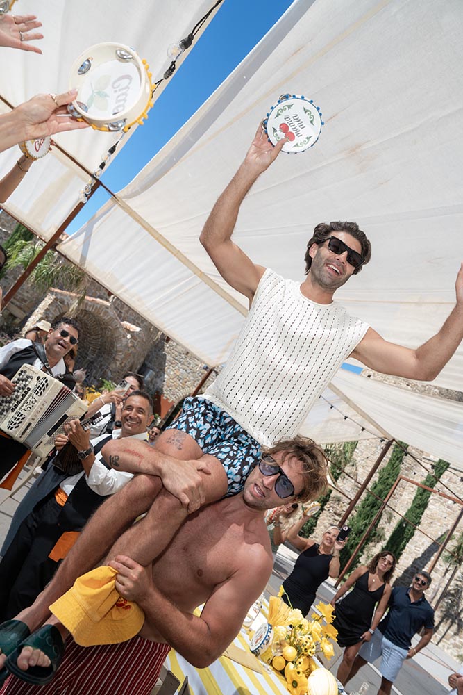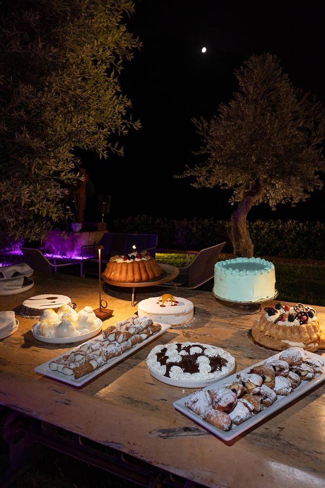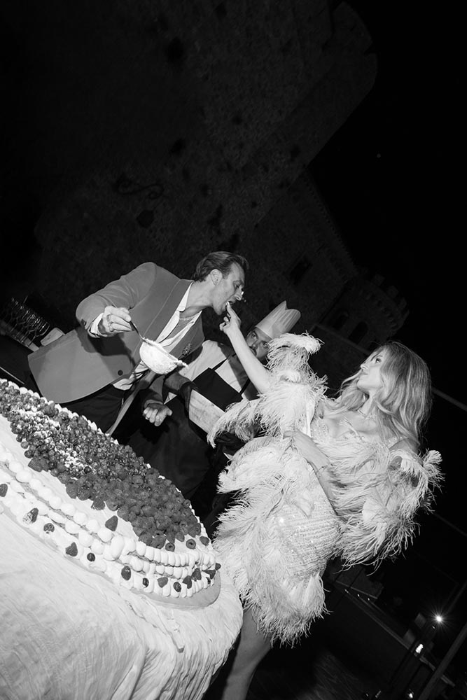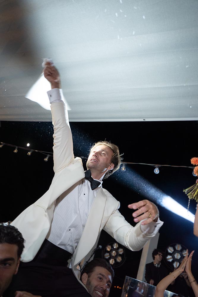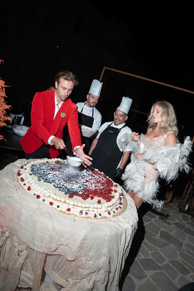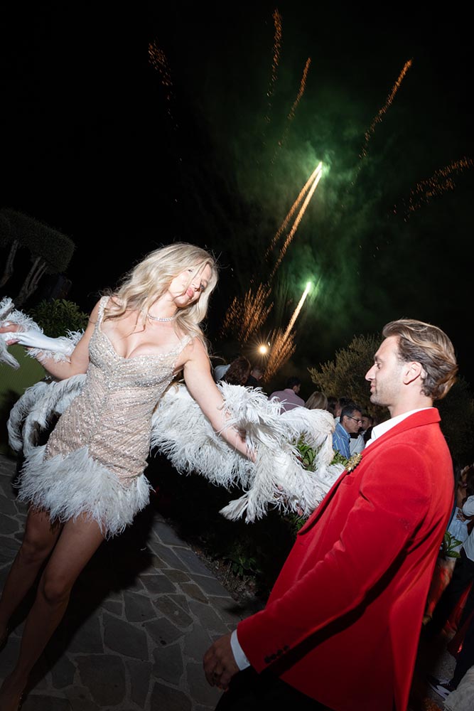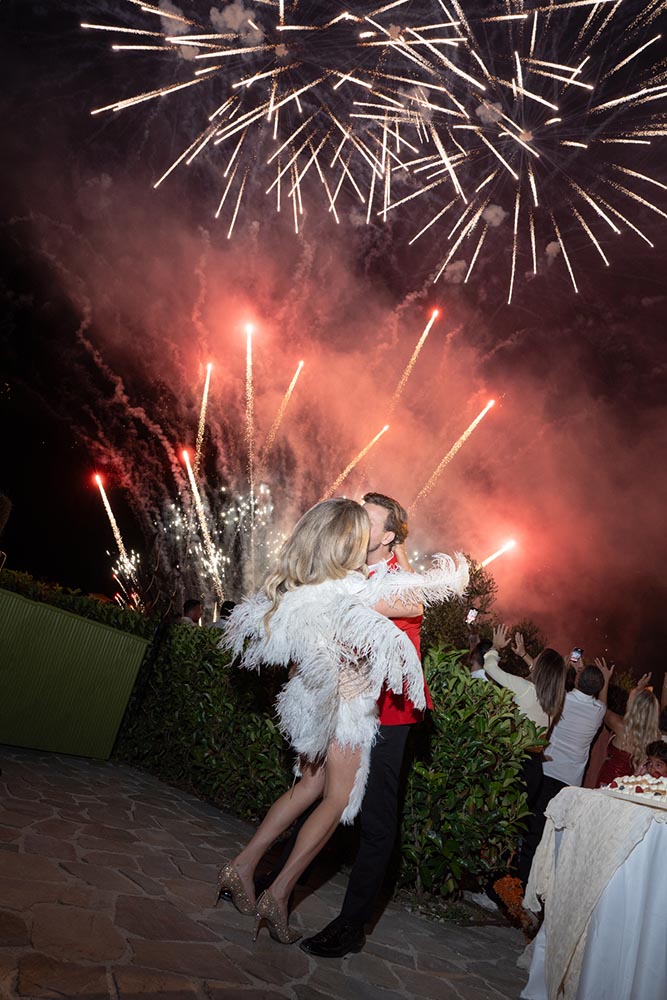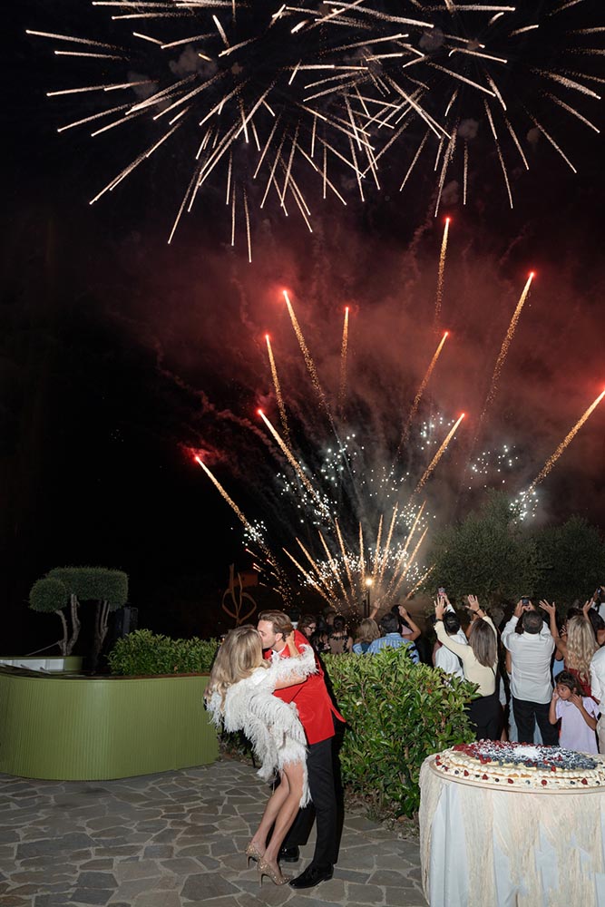 As the evening peaked, guests gathered around a Millefoglie wedding cake, surrounded by sparklers and collective anticipation. Moments later, a fireworks display lit up the Cilento sky, creating a cinematic finale that felt both intimate and grand.