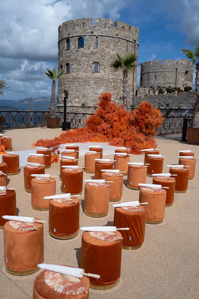 Set along the Cilento Coast in Southern Italy, just south of the Amalfi Coast, this destination wedding at Castello di Rocca Cilento was a bold celebration of luxury, individuality, and unapologetic energy. Overlooking the Mediterranean and surrounded by centuries of history, the venue provided the perfect backdrop for a high-end Lebanese wedding infused with modern glamour and fearless design.