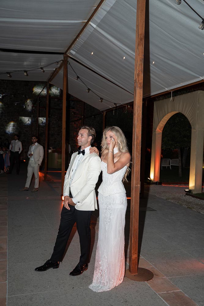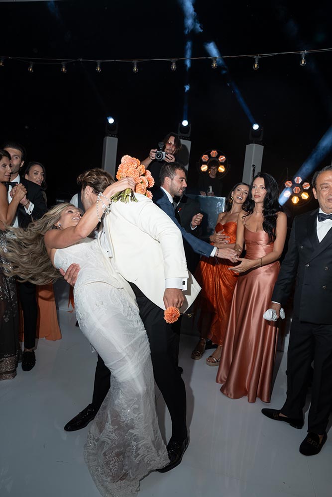 For the ceremony, the bride wore Milla Nova , embodying modern elegance with a strong, confident silhouette. As the evening transitioned into full celebration mode, she changed into her second look by Ari The Brand (backlink: https:// arithebrand.com/), perfectly matching the elevated party atmosphere.