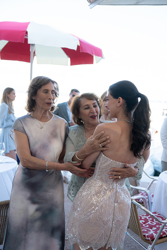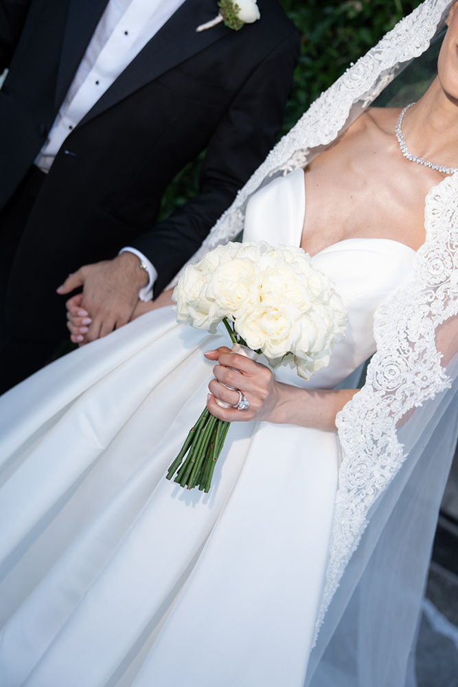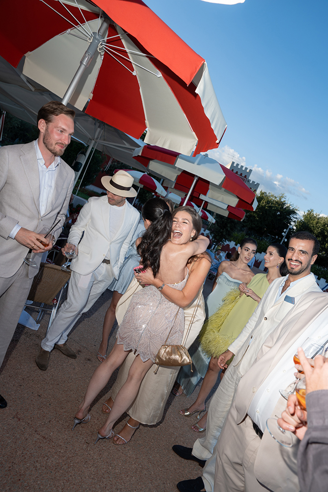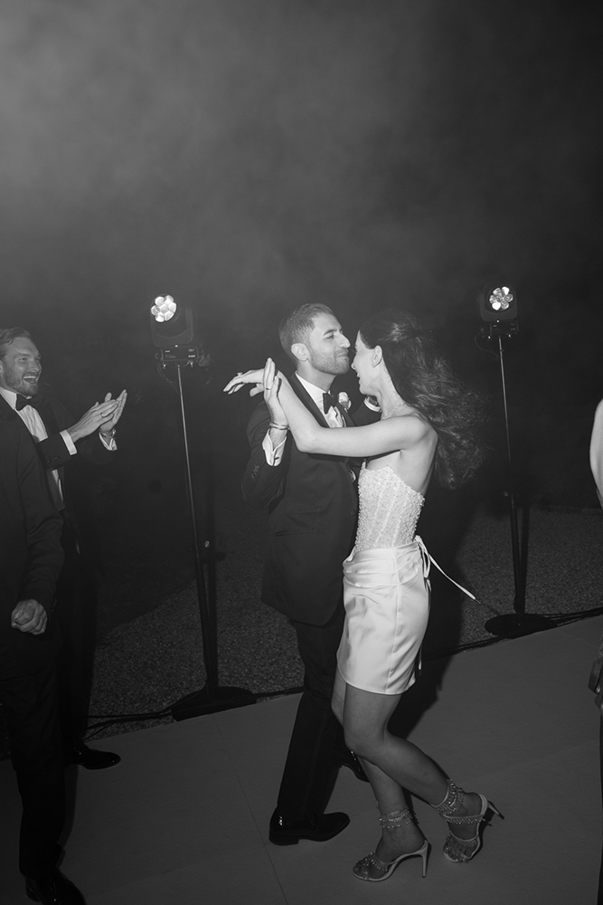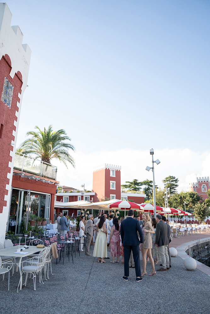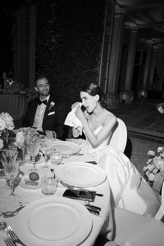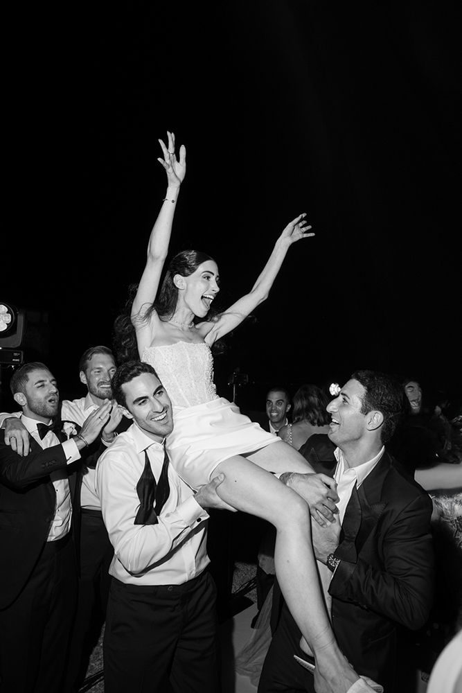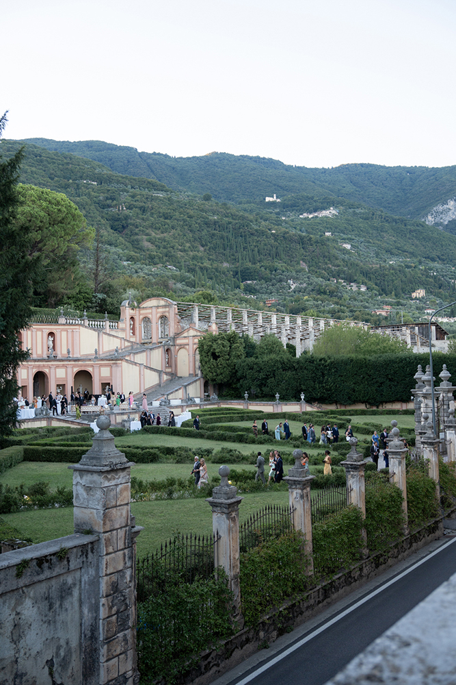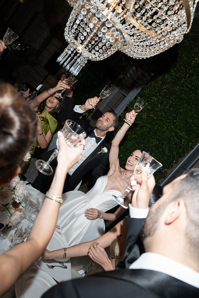 The bride wore a striking Vera Wang wedding dress , becoming an undeniable focal point throughout the day. During the aperitivo, the celebration transformed into an energetic day party, with live music by Bravo Wedding Music carrying from afternoon into the evening. Guests sang along, danced freely in the villa gardens, and embraced the unfiltered joy that defined the entire celebration.