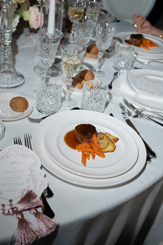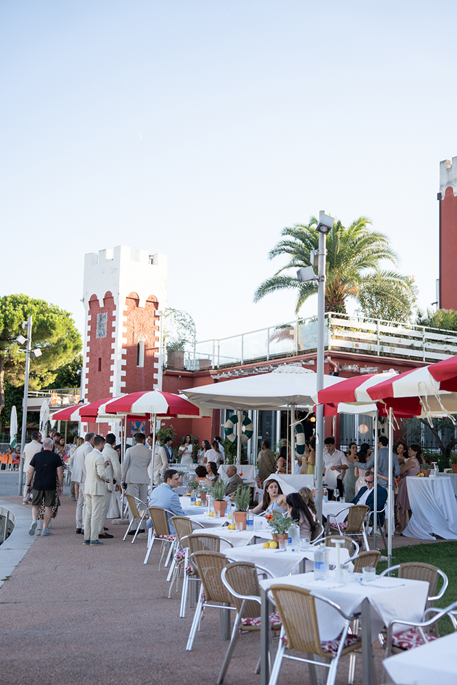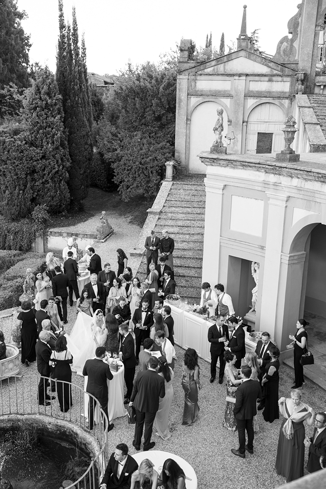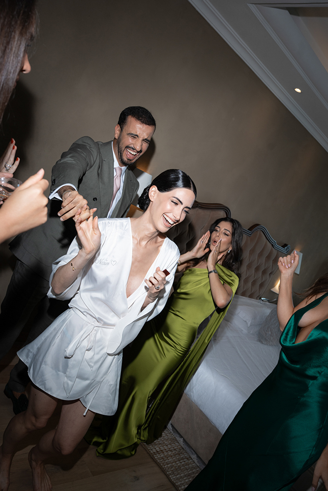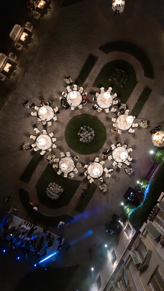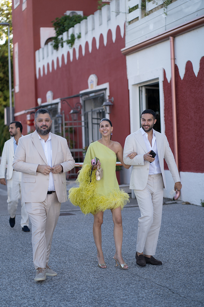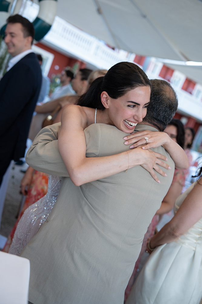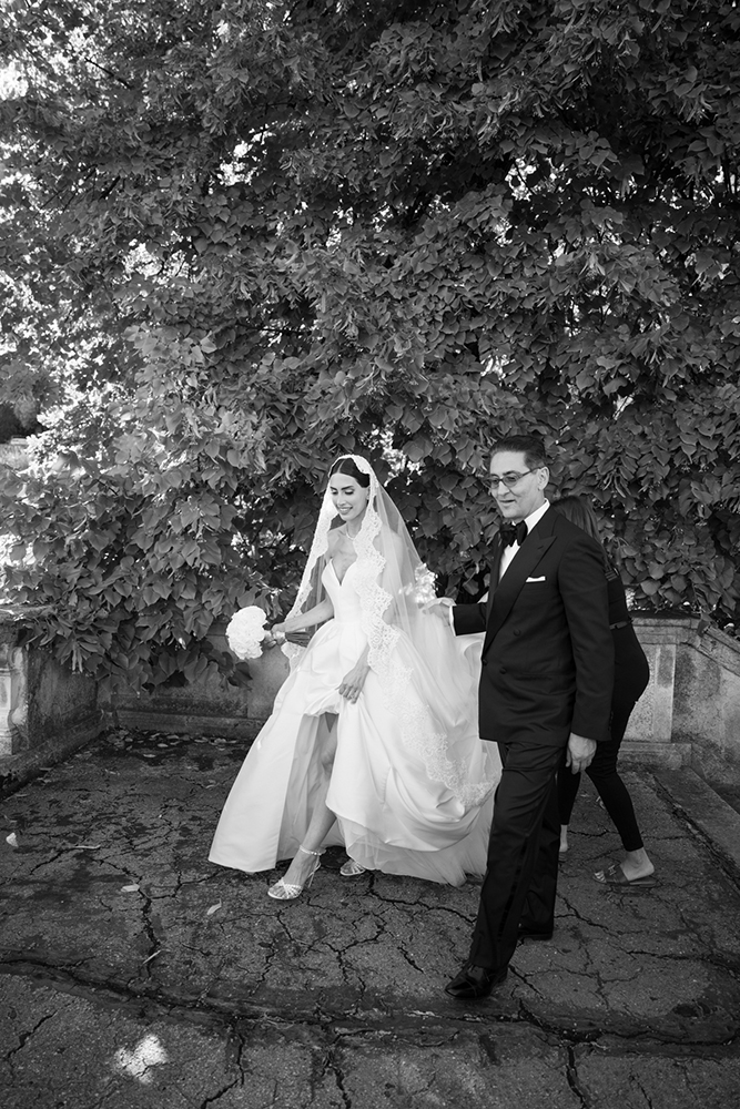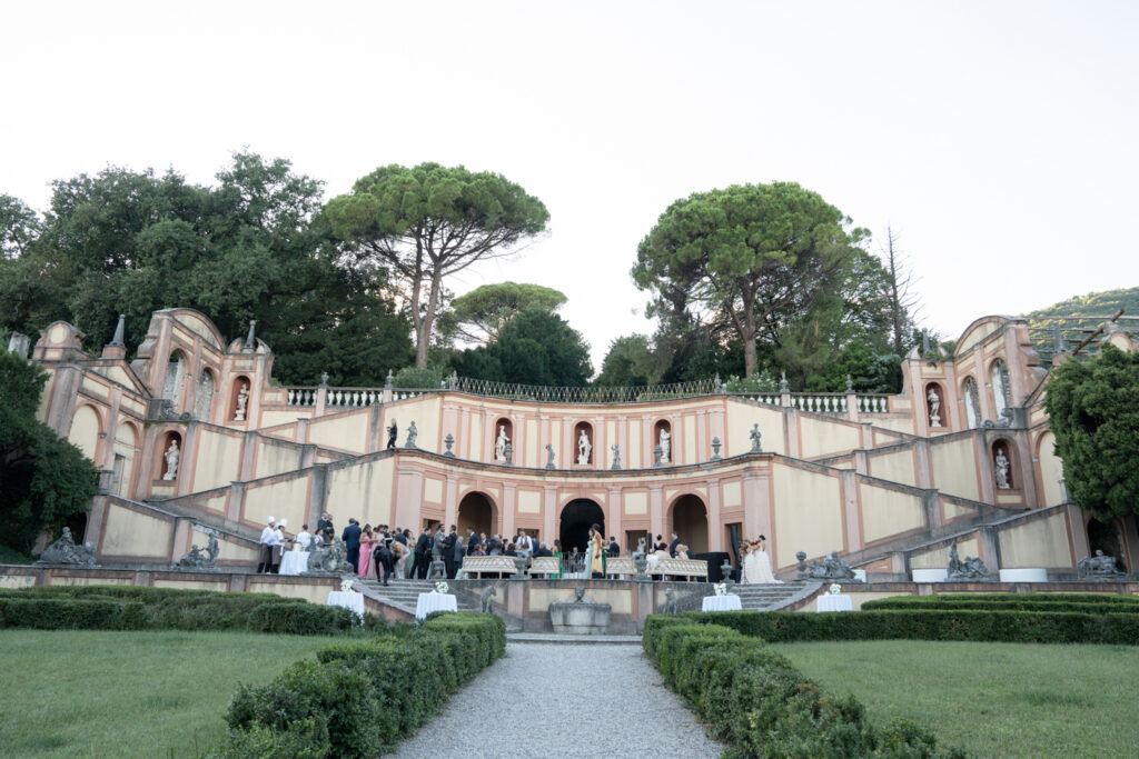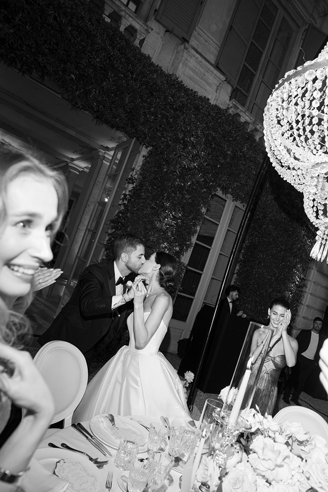 The bride wore a striking Vera Wang wedding dress , becoming an undeniable focal point throughout the day. During the aperitivo, the celebration transformed into an energetic day party, with live music by Bravo Wedding Music carrying from afternoon into the evening. Guests sang along, danced freely in the villa gardens, and embraced the unfiltered joy that defined the entire celebration.