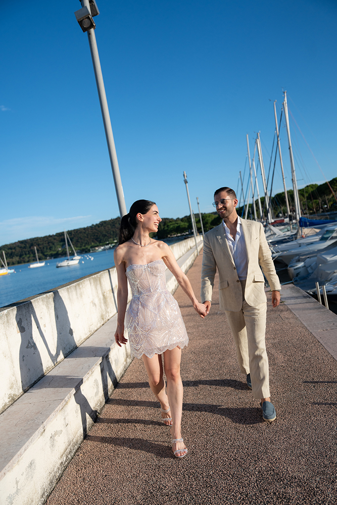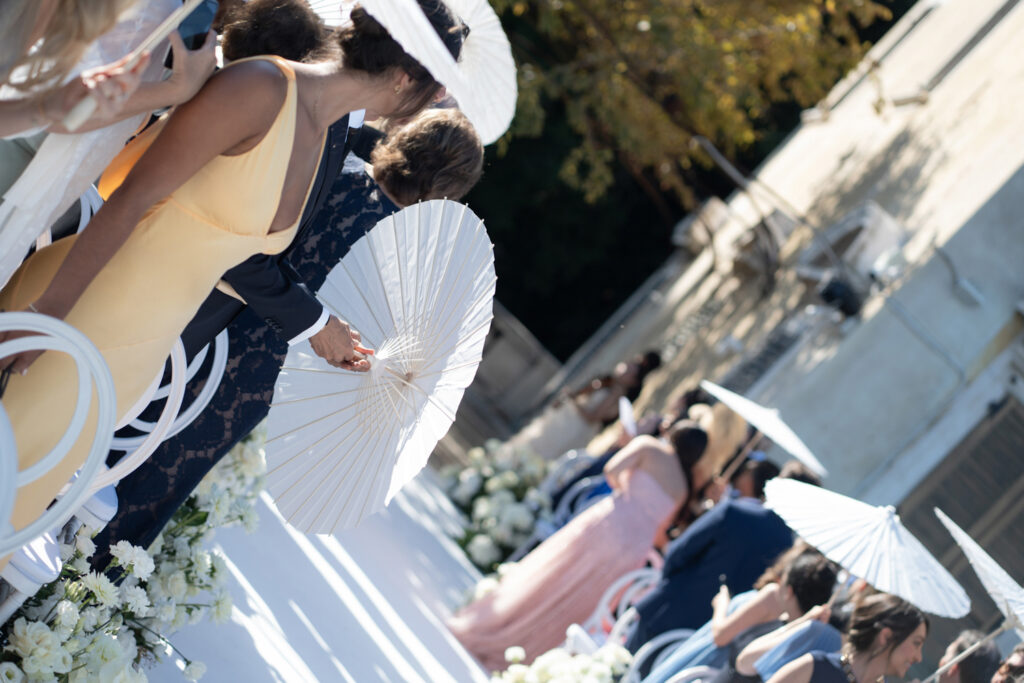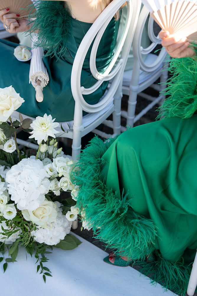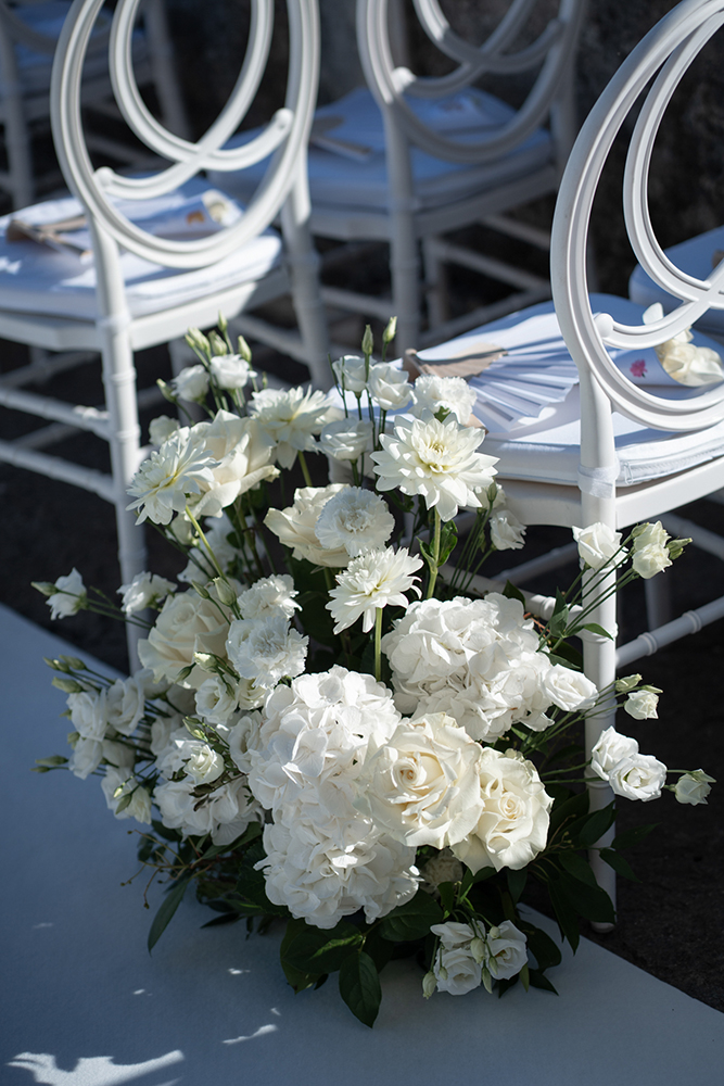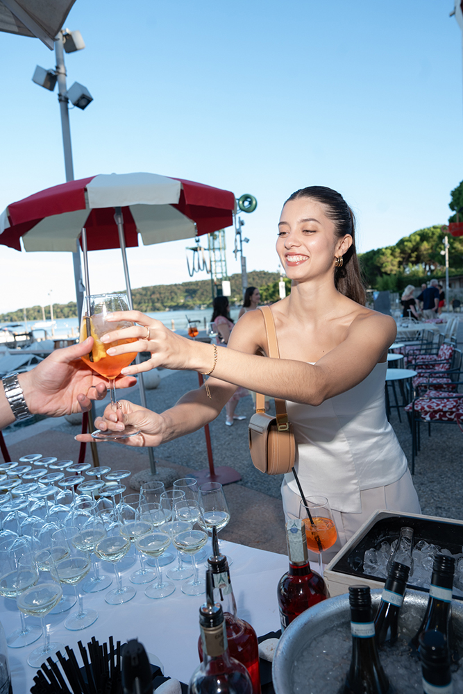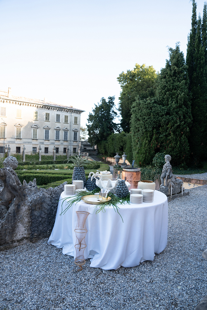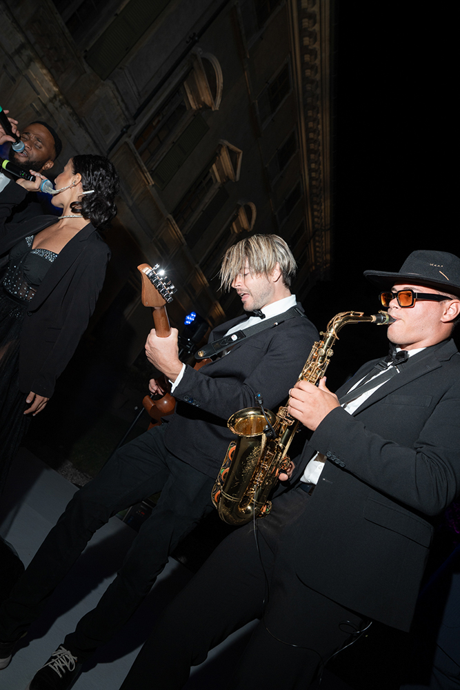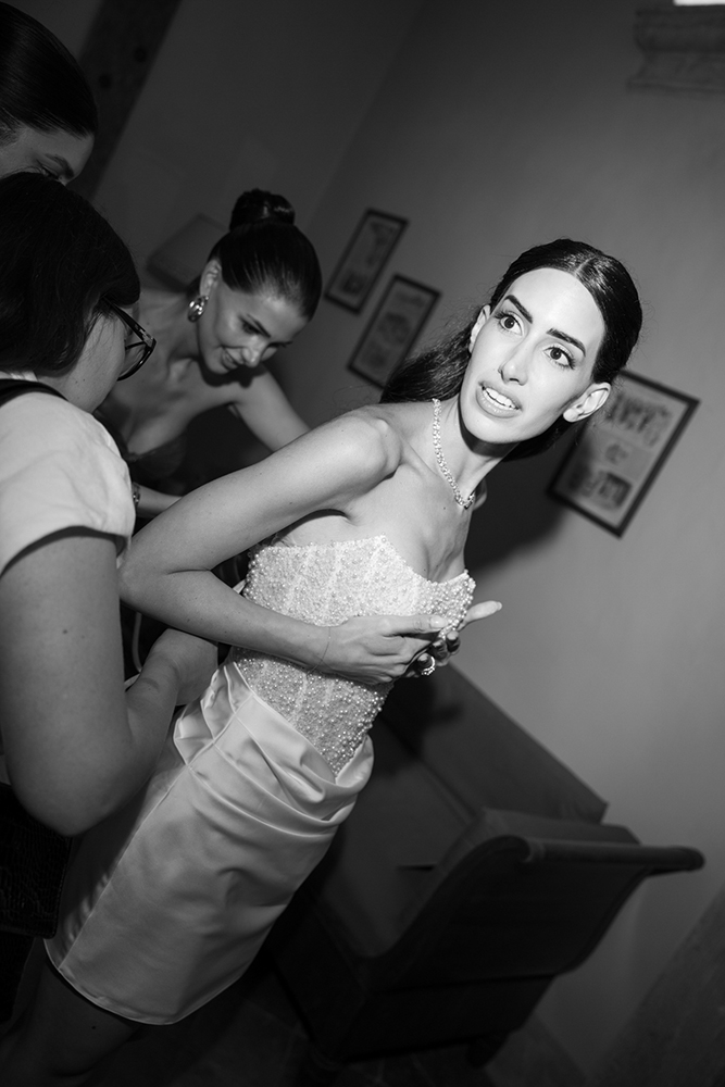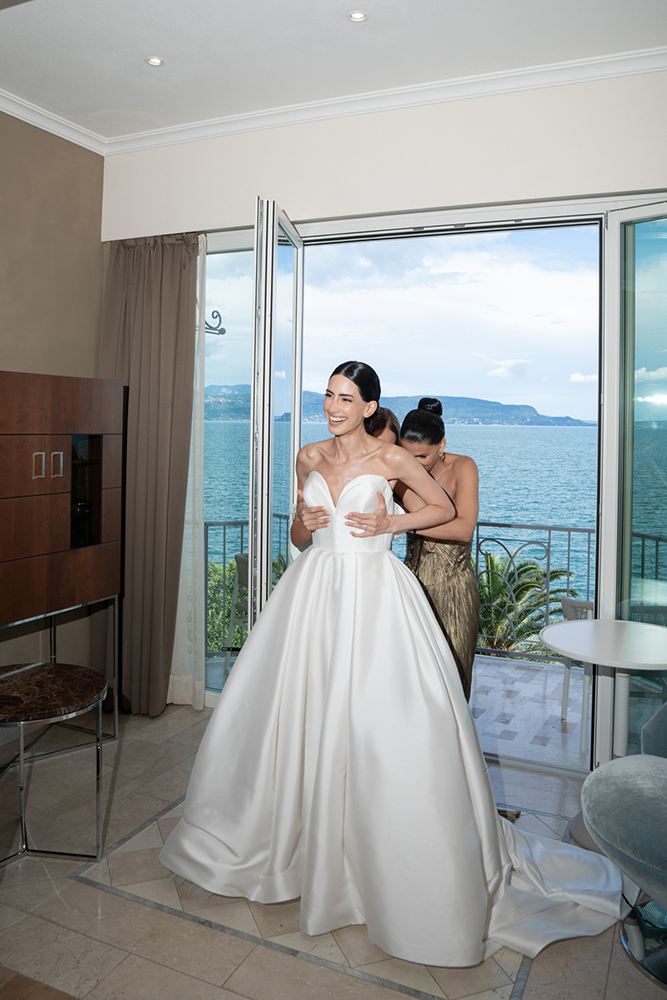 The bride wore a striking Vera Wang wedding dress , becoming an undeniable focal point throughout the day. During the aperitivo, the celebration transformed into an energetic day party, with live music by Bravo Wedding Music carrying from afternoon into the evening. Guests sang along, danced freely in the villa gardens, and embraced the unfiltered joy that defined the entire celebration.