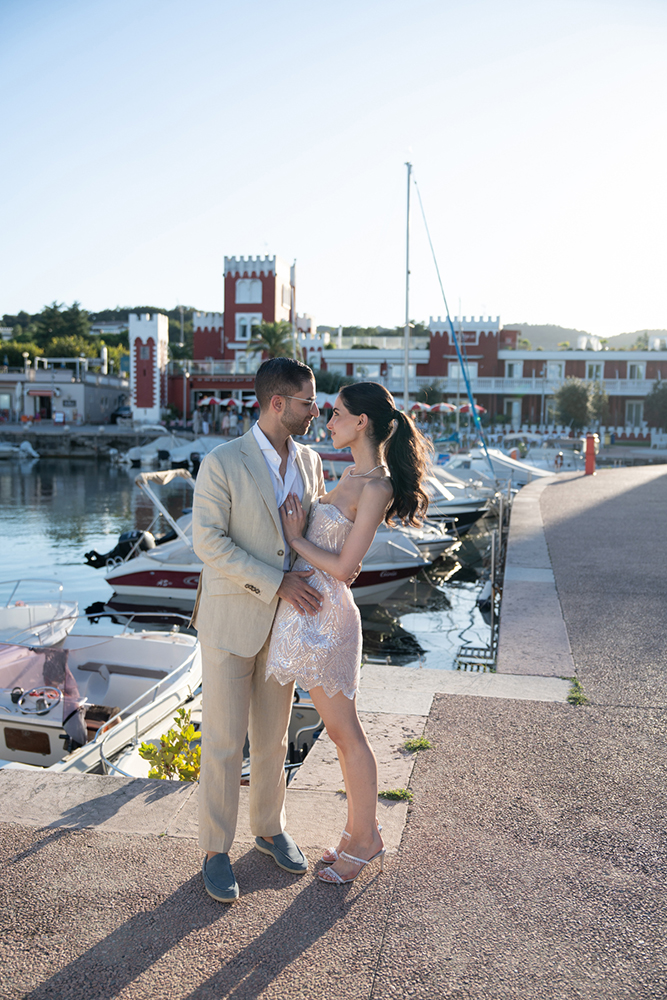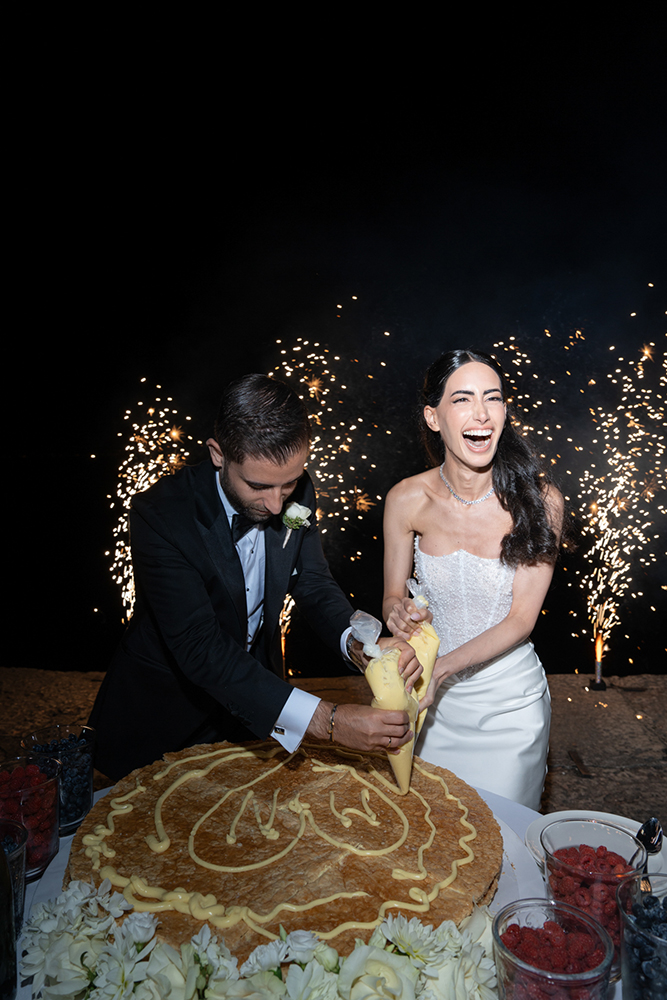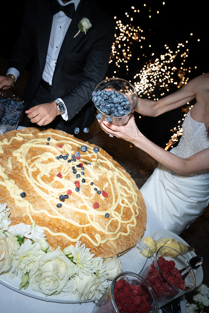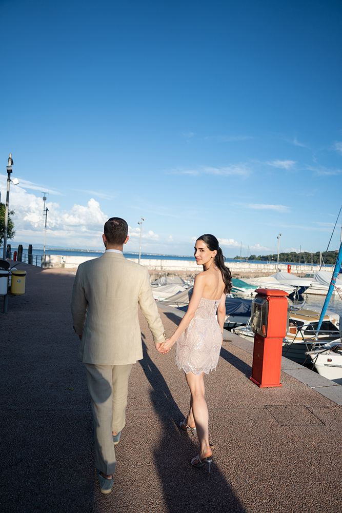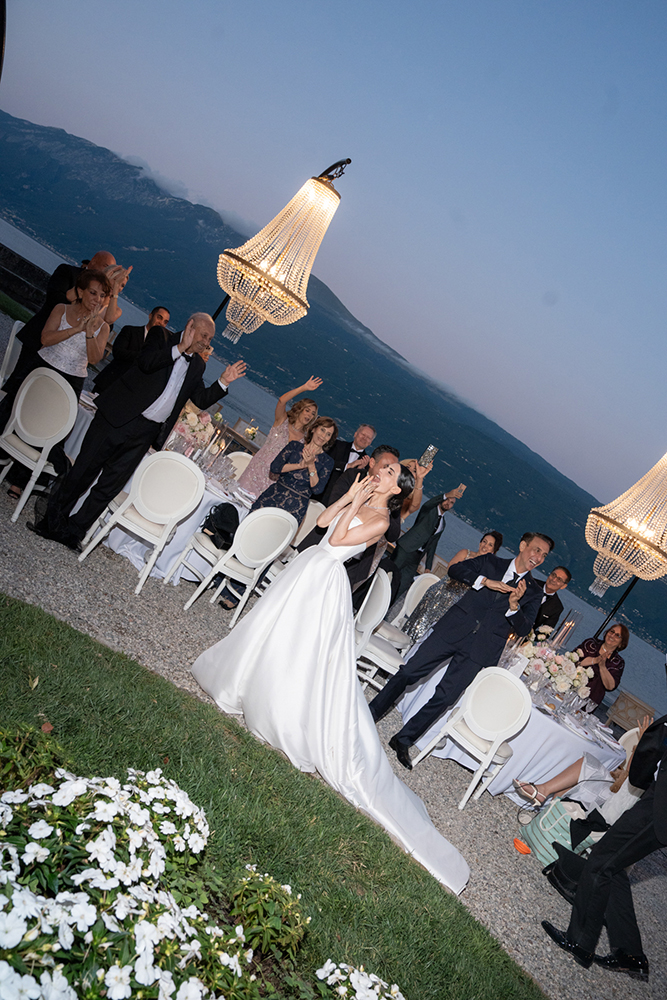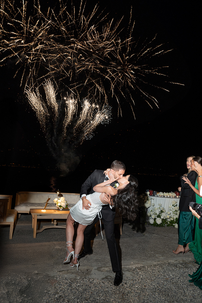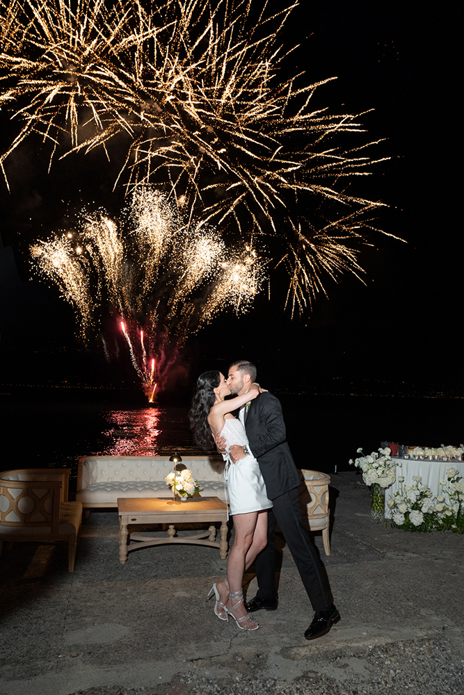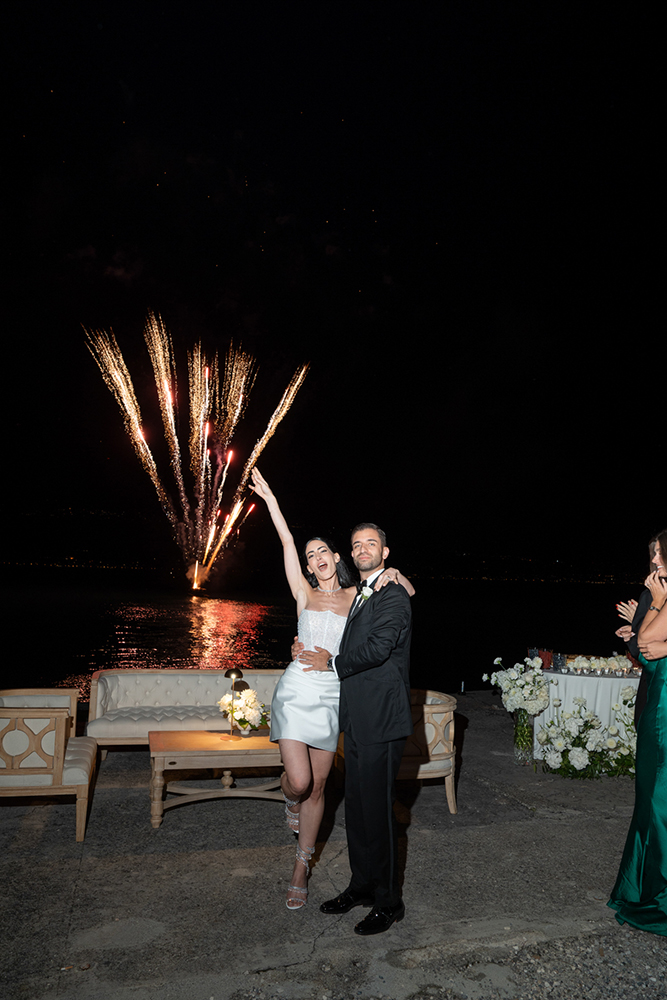 As the couple made their entrance to dinner, emotion peaked — laughter, singing, and heartfelt speeches filled the space. The evening continued with a Millefoglie wedding cake, followed by a spectacular fireworks display by Brixia Fireworks , illuminating the Lake Garda sky. By then, the bride had changed into her second look by Rosie Etienne Bridal, celebrating the night with effortless elegance and energy.